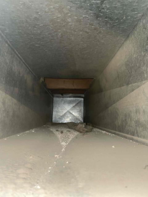 Successful completion of Air duct cleaning and sanitization of hvac system. Successfully cleaned 12 supplies/2 returns, as well as three access points cut on supply and return trunks. Job Complete.